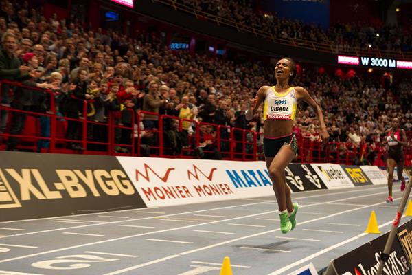 It was the second of Dibaba's three record-breaking runs last winter, coming after her 1500m world indoor record in Karlsruhe and before her two miles world indoor best in Birmingham.