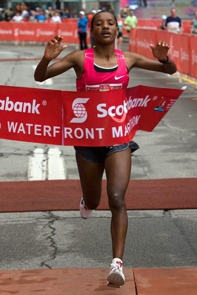 Gobena led after 13.1 miles in 1:12:43. She and Ethiopian Tigist Tufa pulled away from the pack at about the 18th mile, and Gobena began breaking away from Tufa four miles later en route to her fifth marathon victory, her first since 2011.